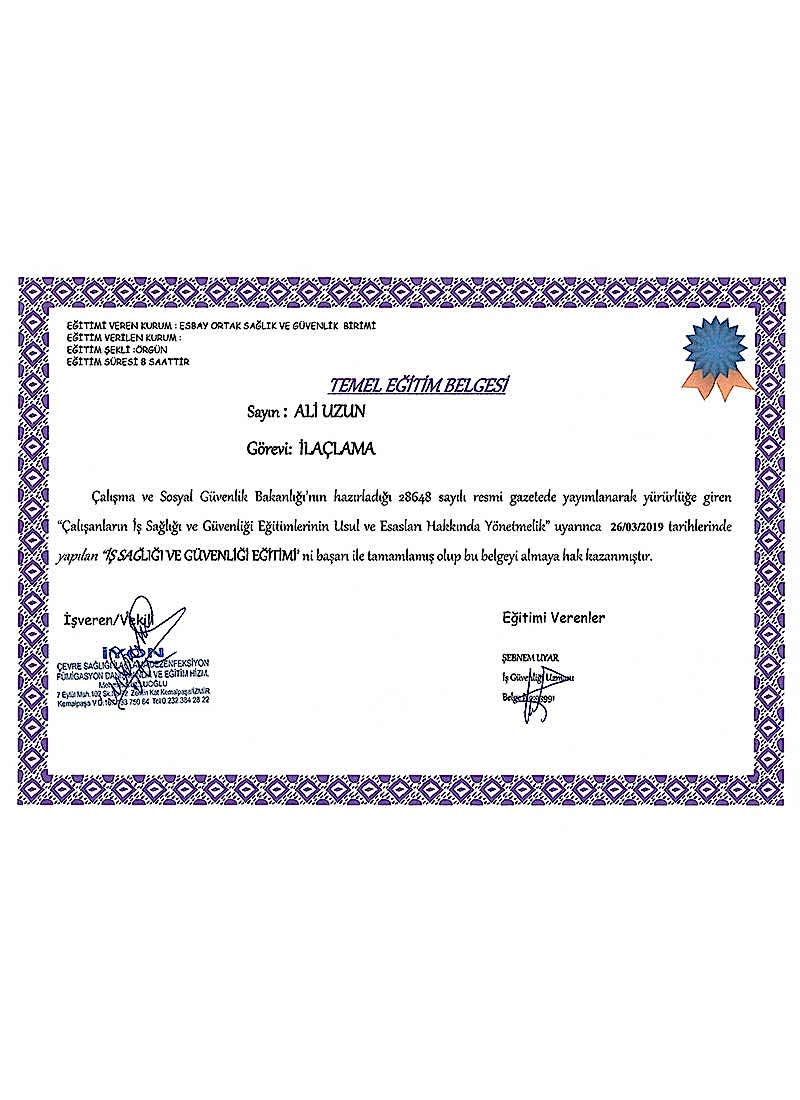 İş Güvenliği Eğitim Belgesi : Ali Uzun İş Güvenliği Eğitim Belgesi : Ali Uzun -