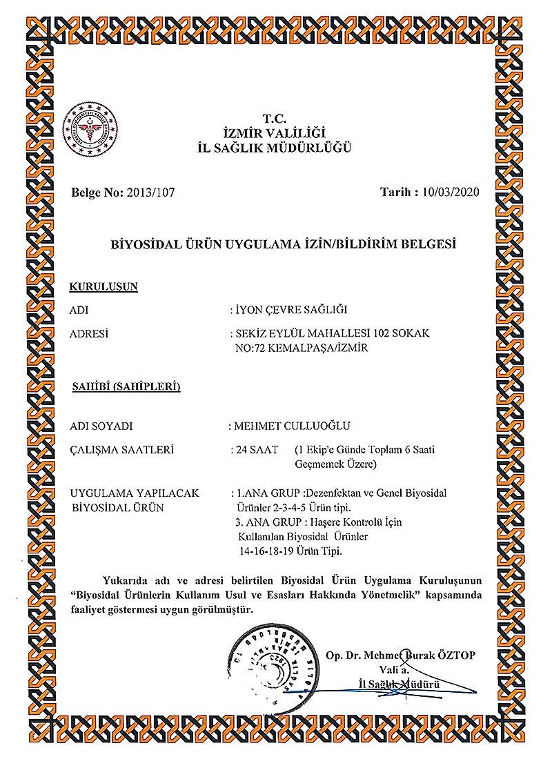Biyosidal Ürün Uygulama İzin Belgesi Biyosidal Ürün Uygulama İzin Belgesi -