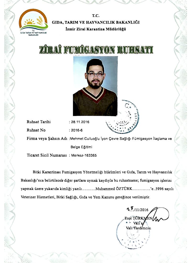 Zirai Fumigasyon Ruhsatı Zirai Fumigasyon Ruhsatı -