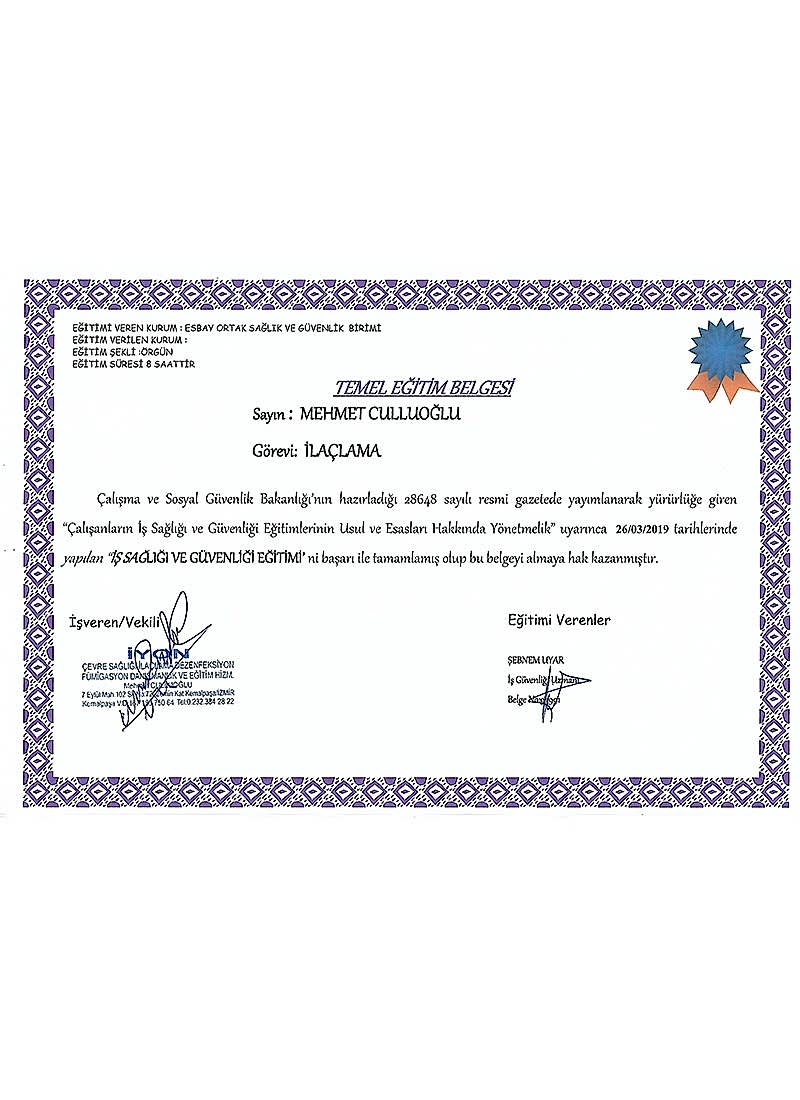 k) İş Güvenliği Eğitim Belgesi : Mehmet Culluoğlu k) İş Güvenliği Eğitim Belgesi : Mehmet Culluoğlu -