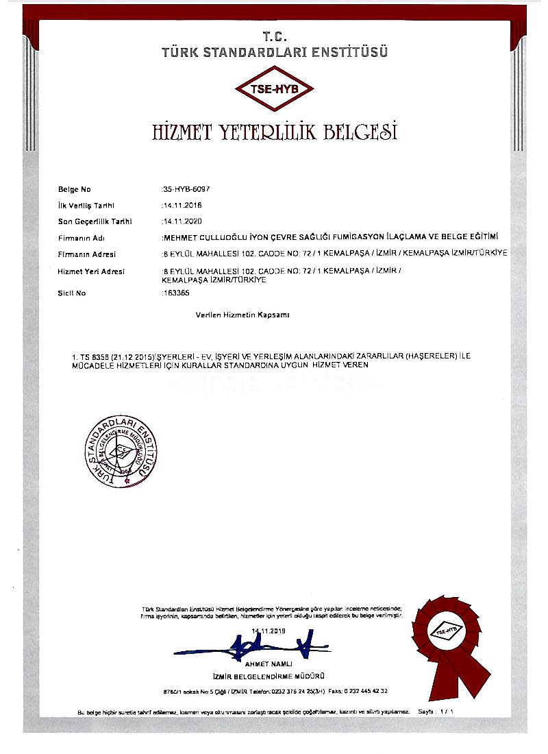 i) TSE Hizmet Yeterlilik Belgesi i) TSE Hizmet Yeterlilik Belgesi